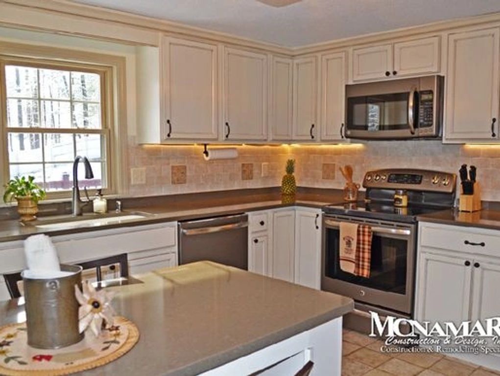 This beautifully renovated kitchen combines classic New England charm with modern updates designed for everyday living. Featuring custom shaker cabinetry, sleek quartz countertops, and a full suite of stainless-steel appliances, this remodel brings function and style together seamlessly.