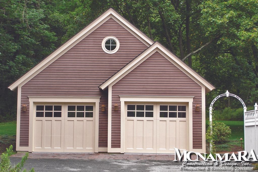 This beautifully crafted garage addition blends traditional New England architecture with modern functionality. Featuring custom carriage-style doors, durable siding, and precise trim detailing, the design complements the home’s existing aesthetic while adding both value and convenience.